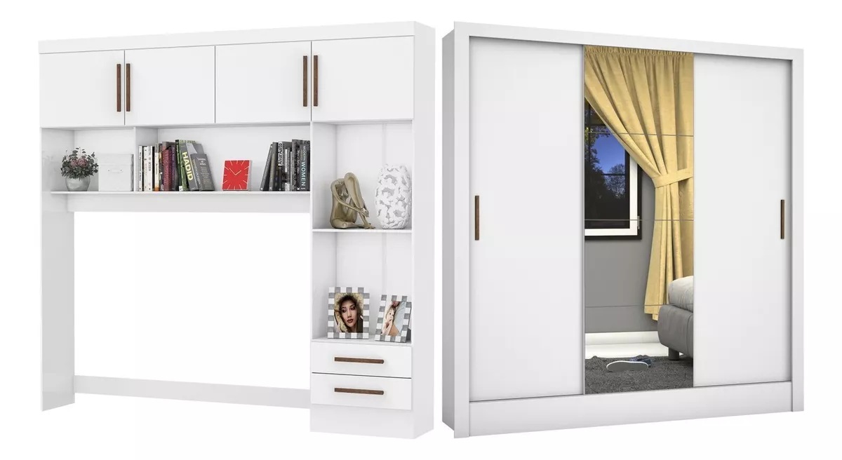Modulado 4 Portas + Guarda-Roupa 3 Portas Dubai/Santiago Plus Branco – CARIOCA MÓVEIS
