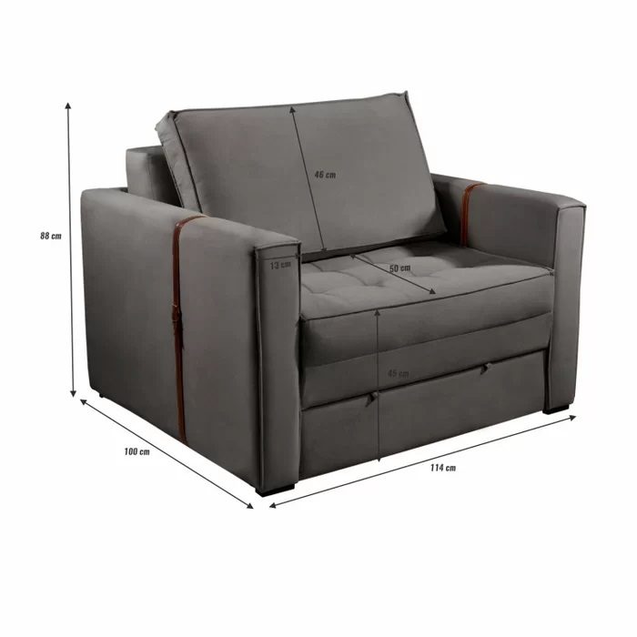 Poltrona Cama Atalaia 1,14 m Cinza – LUXURY ESTOFADOS