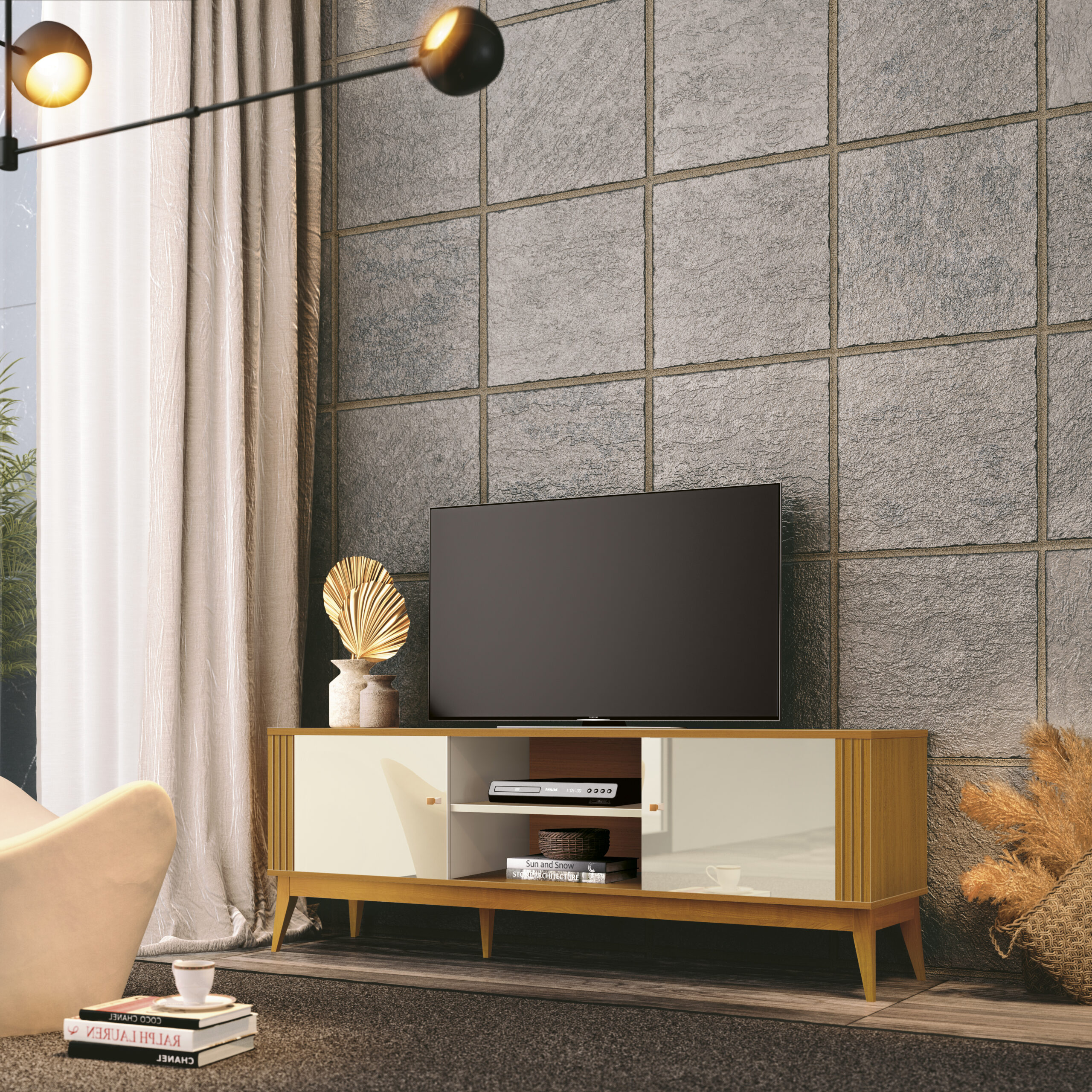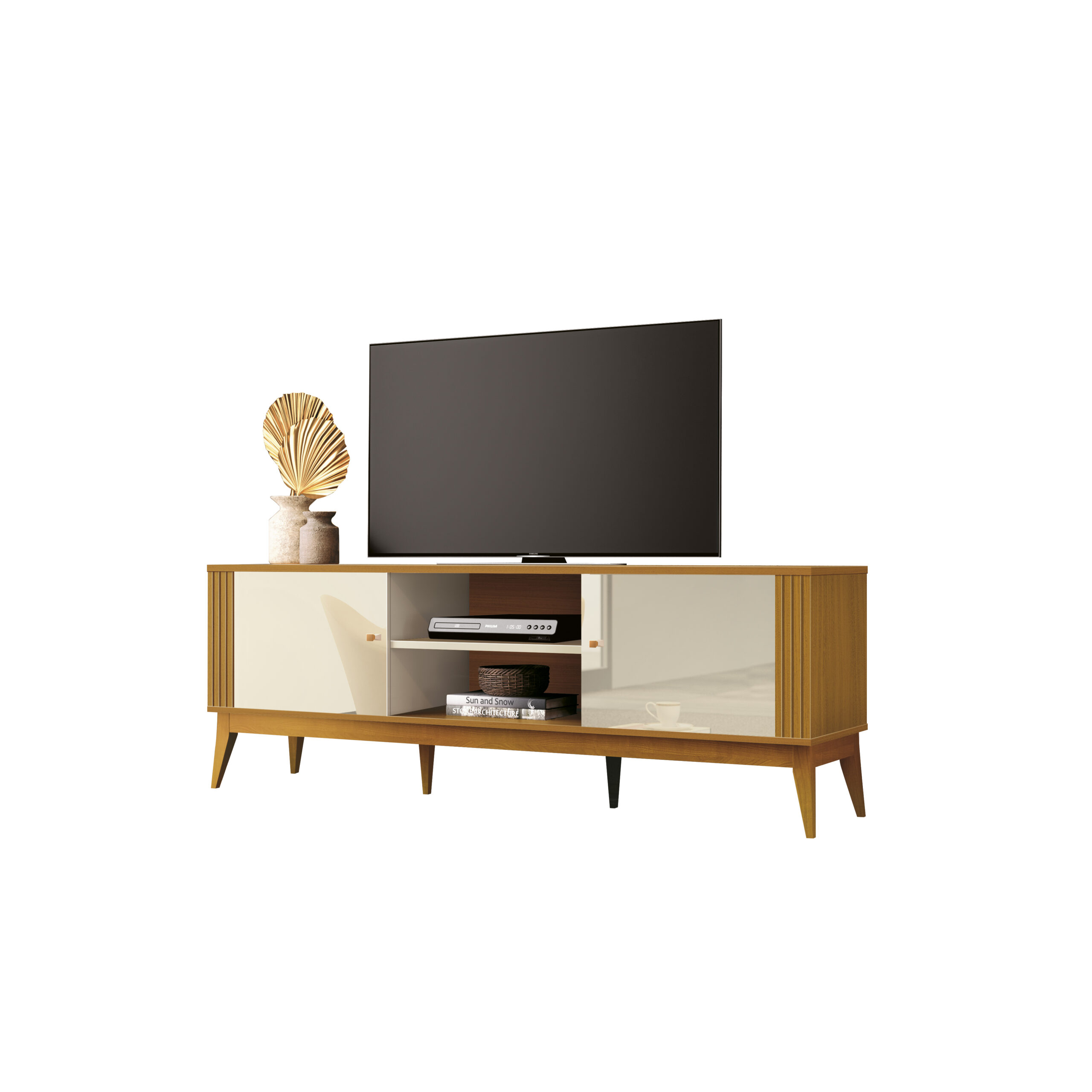 Rack até 60″ Legacy 1.6 Off White/Cedro Natural – EDN MÓVEIS
