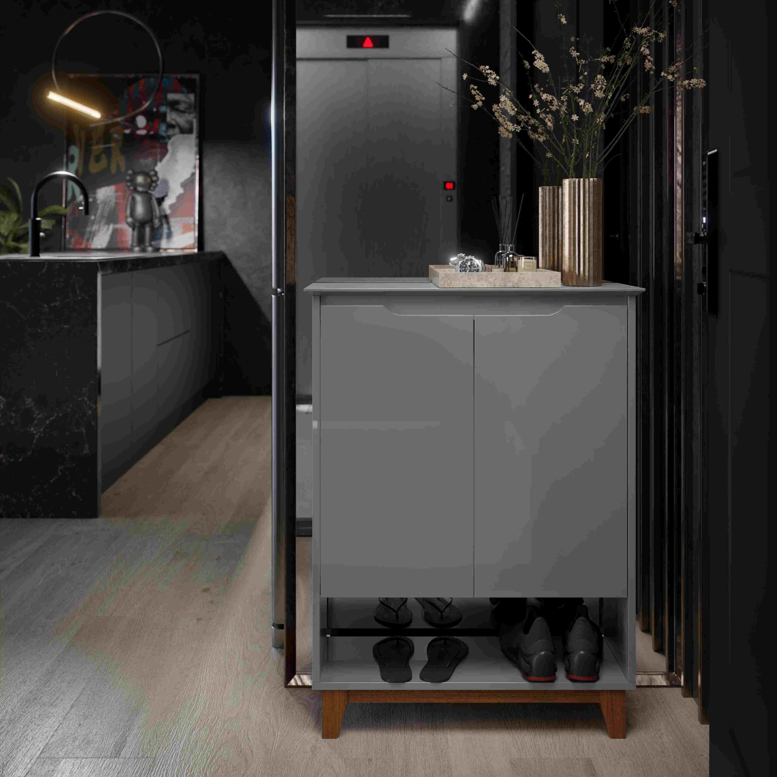 Sapateira Hall Flow Cinza/Freijó – EJ MÓVEIS