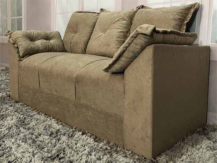 Encosto com almofadas soltas com flocos de espuma.
