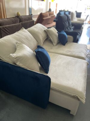Sofá Cama Retrátil Blog 2,20 m Veludo Marfim/Azul – INNOVE ESTOFADOS