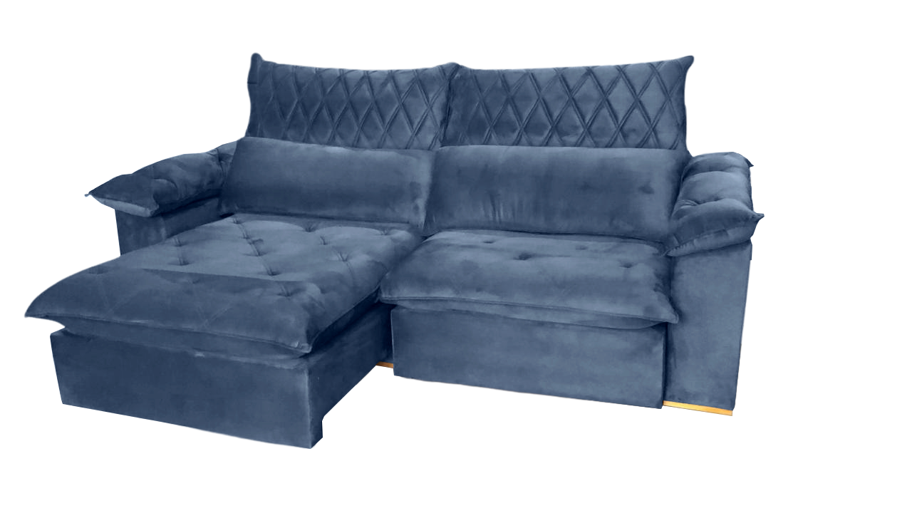 Sofá Retrátil e Reclinável Arezzo 2,50 m Veludo Azul – ARJAN DECOR