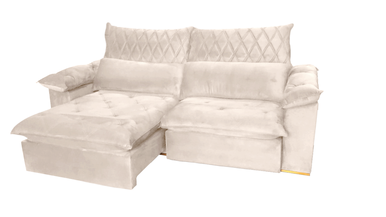 Sofá Retrátil e Reclinável Arezzo 2,50 m Veludo Marfim – ARJAN DECOR