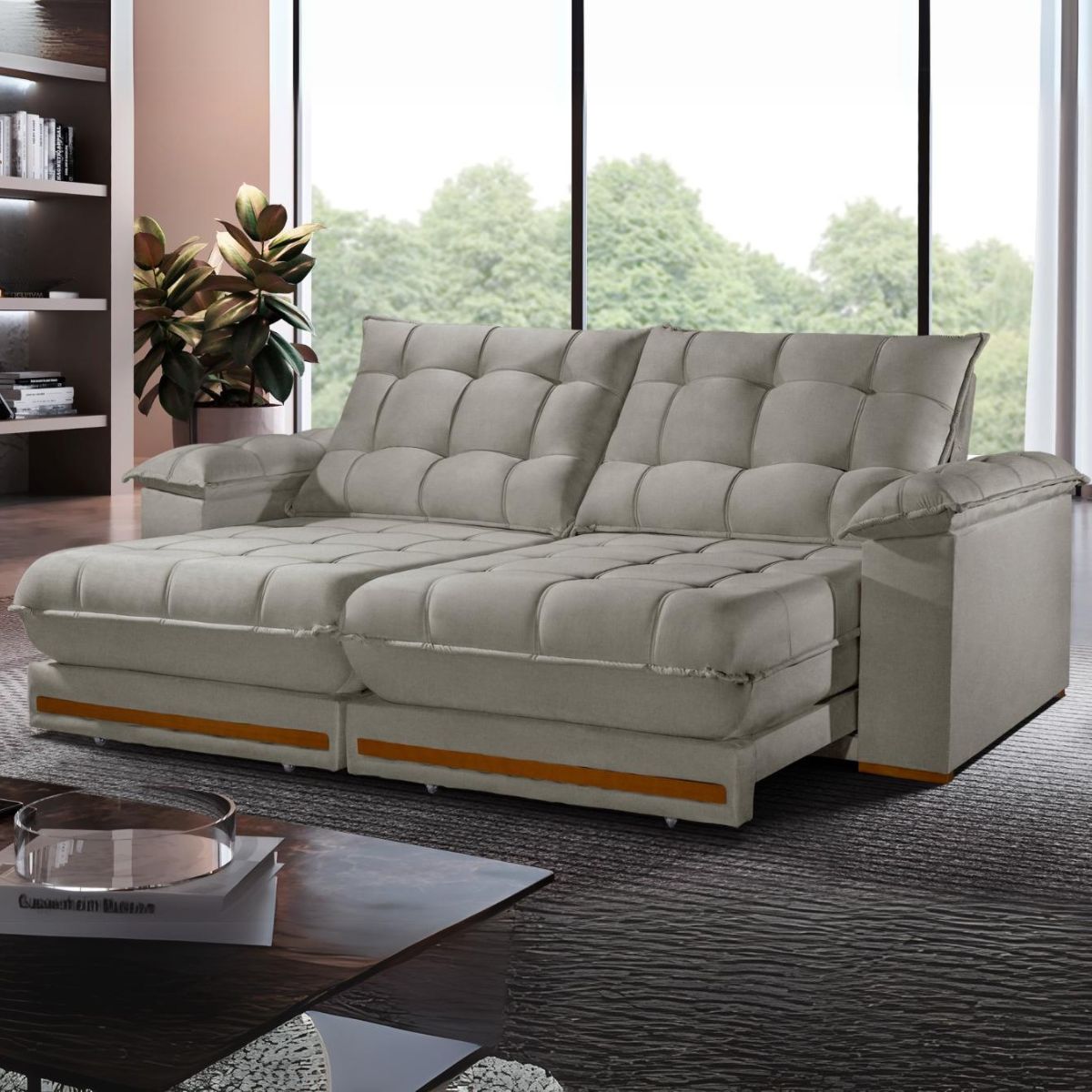 Sofá Retrátil e Reclinável Barcelona 2,50 m Veludo Cinza Prata – ESTOFADOS TEIXEIRA