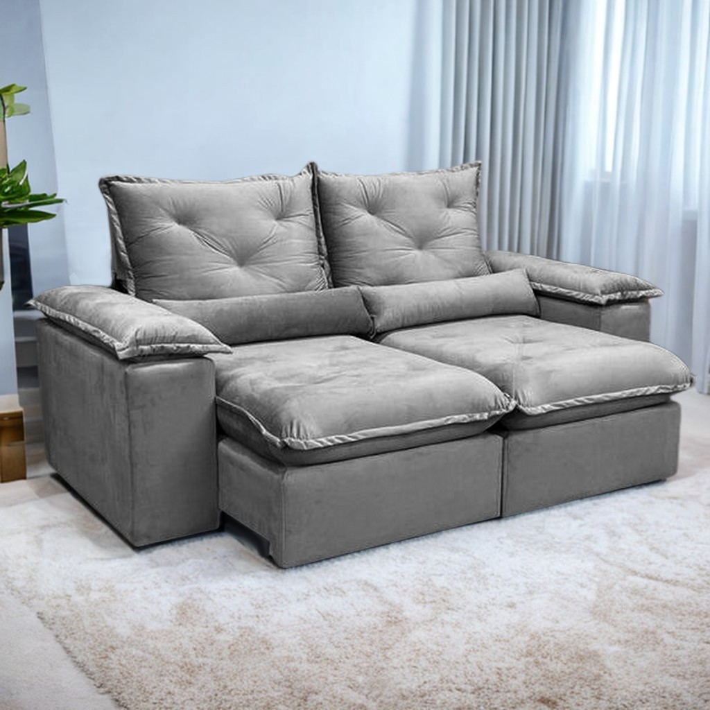 Sofá Retrátil e Reclinável Brasão 2,00 m Veludo Grafite – MD ESTOFADOS