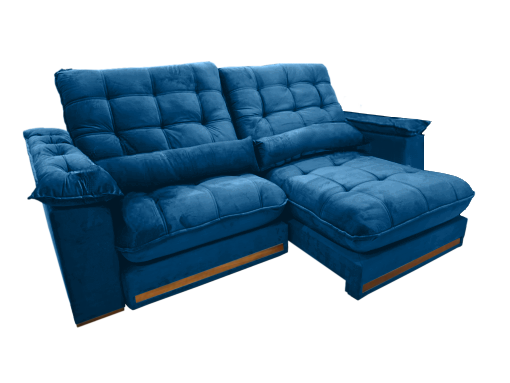 Sofá Retrátil e Reclinável Hércules 2,50 m Veludo Azul – VICAM ESTOFADOS