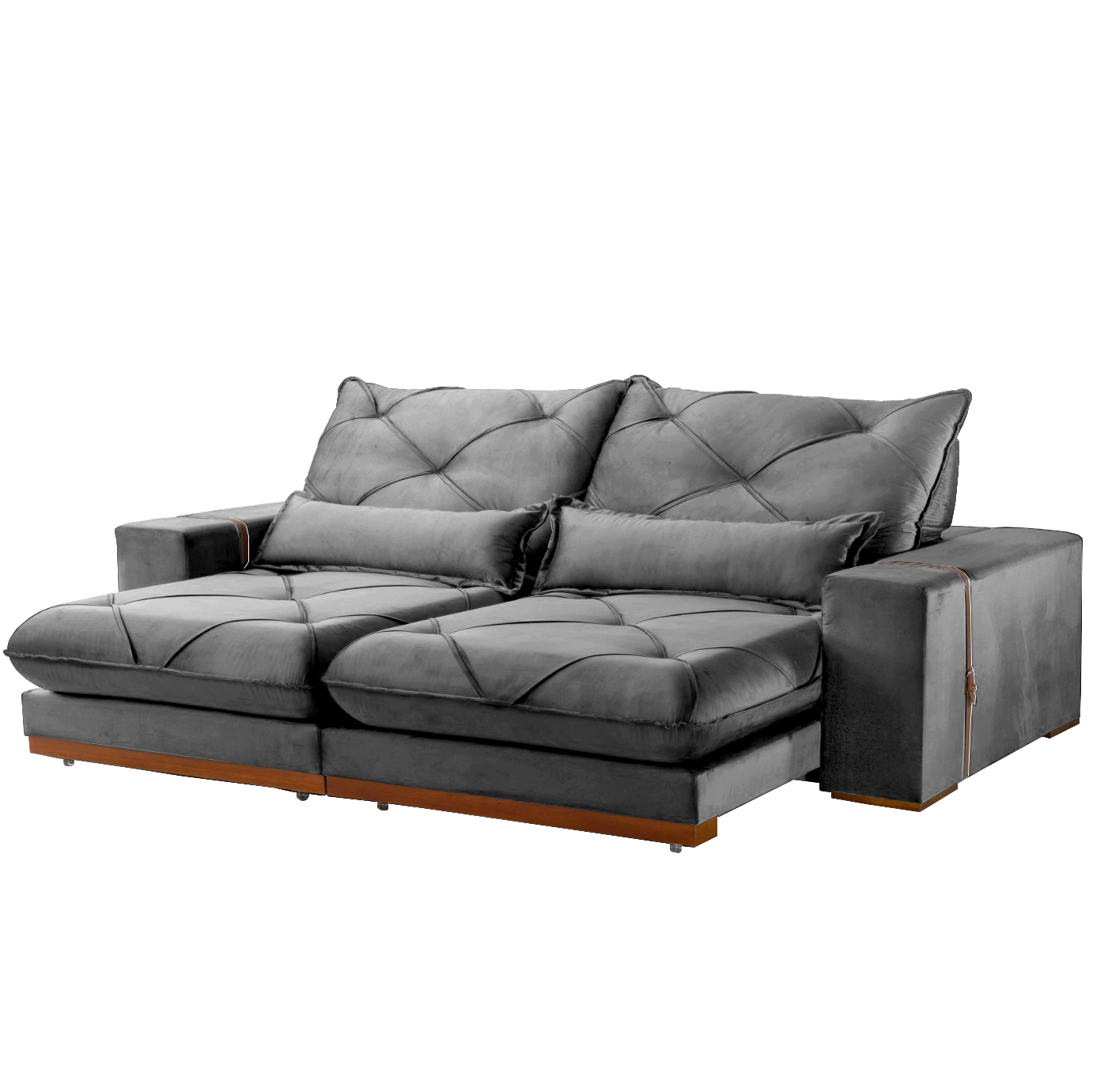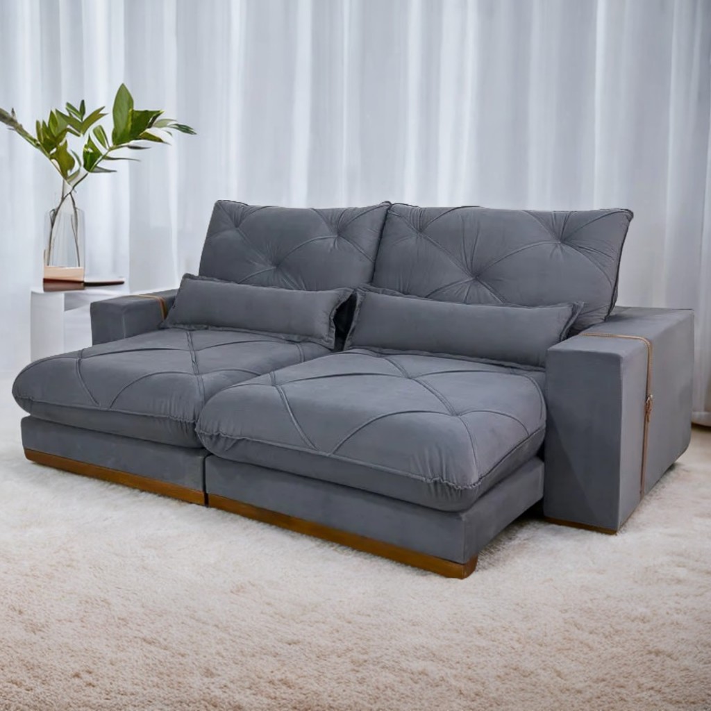 Sofá Retrátil e Reclinável Luanda/Isabella/Barcelona 2,50 m Veludo Grafite – TREVO ESTOFADOS