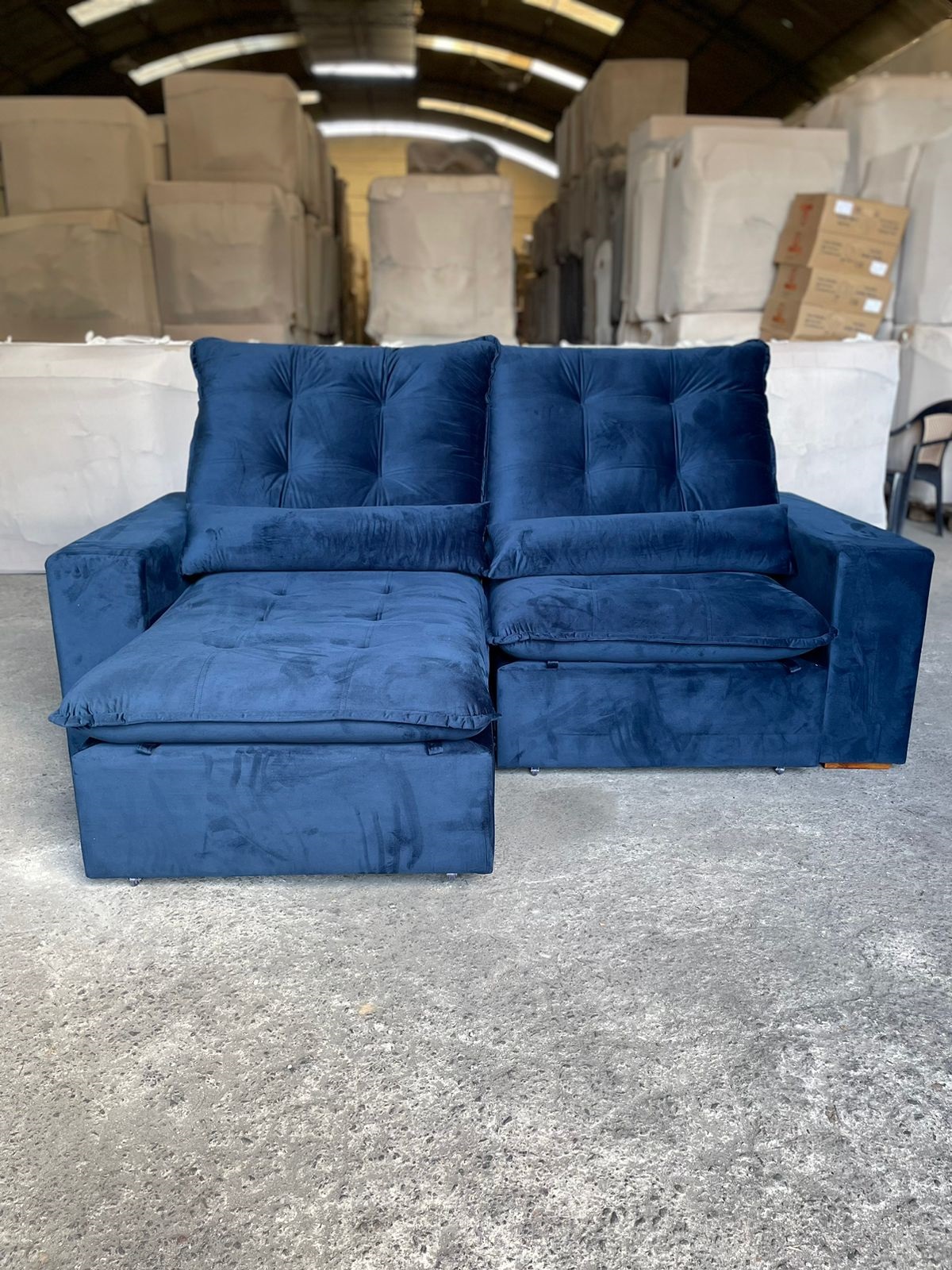 Sofá Retrátil e Reclinável Malu 210 Azul – D’VITRINE ESTOFADOS
