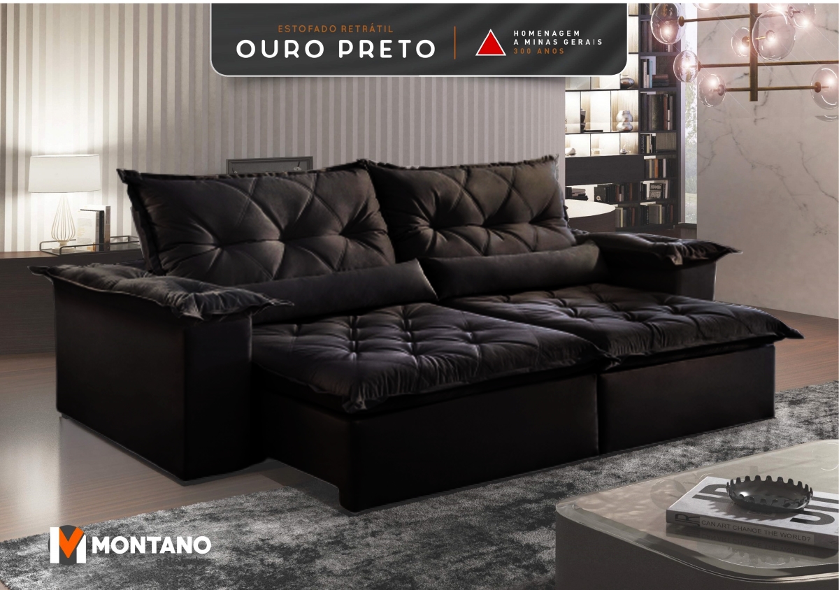 Sofá Retrátil e Reclinável Ouro Preto 240 Preto – MONTANO ESTOFADOS