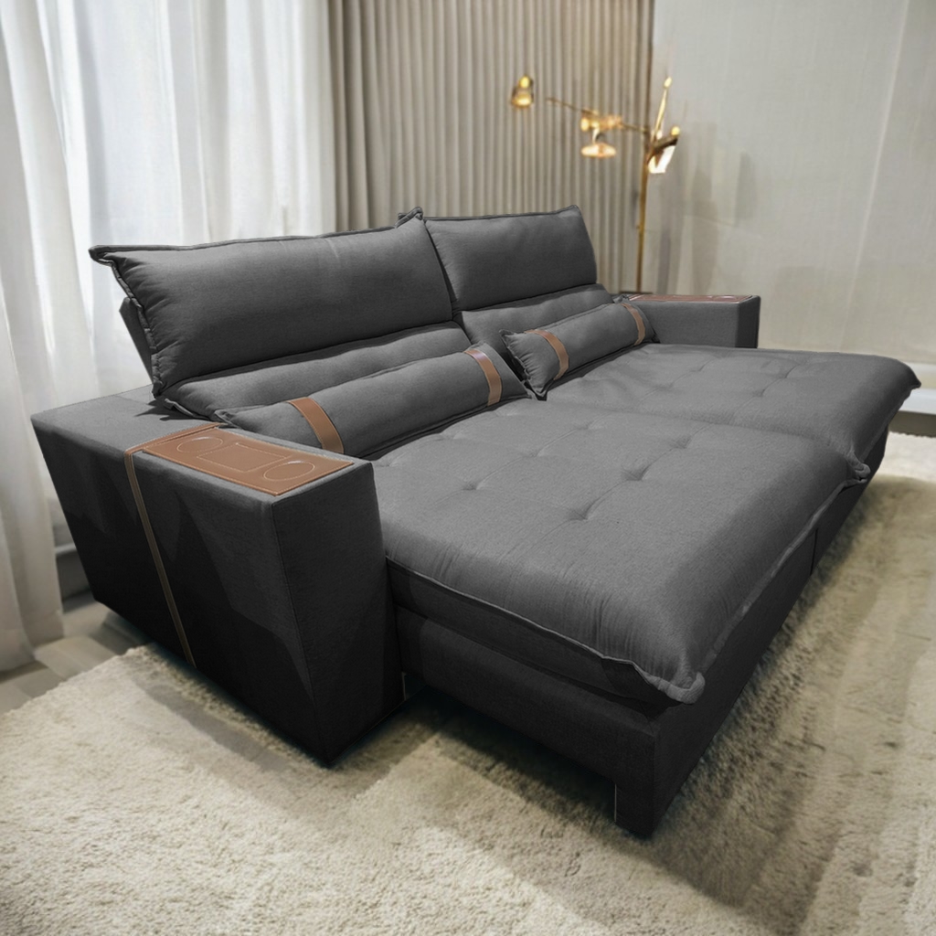 Sofá Retrátil e Reclinável Ravello 2,30 m Linho Grafite 06 – INNOVE ESTOFADOS