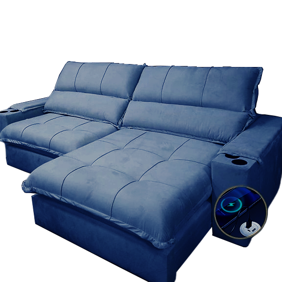 Sofá Retrátil e Reclinável Zeus 2,90 m Azul – ZARAT ESTOFADOS