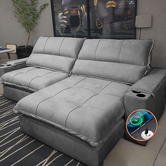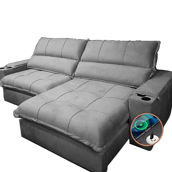 Sofá Retrátil e Reclinável Zeus 2,90 m Cinza – ZARAT ESTOFADOS