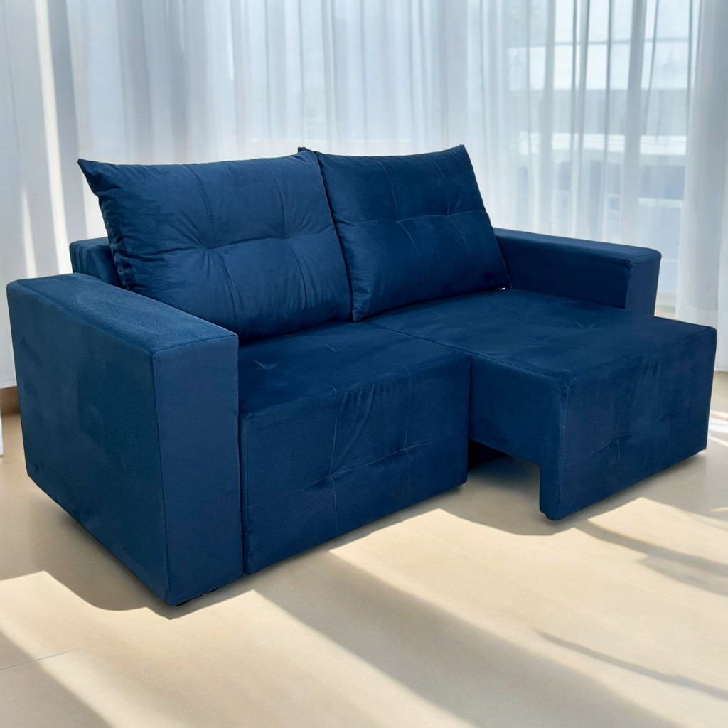 Sofá Retrátil Havaí 1,80 m Veludinho Azul – QUINE ESTOFADOS