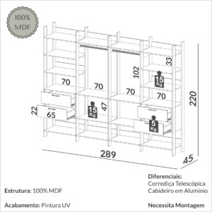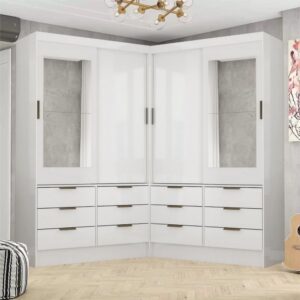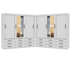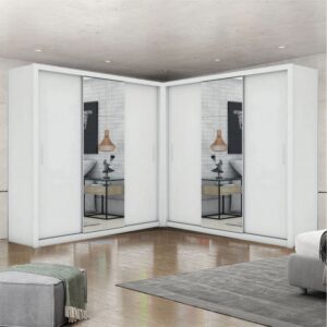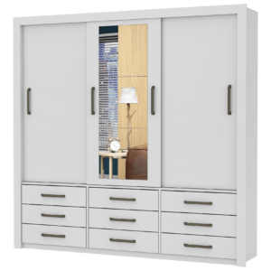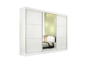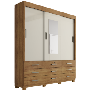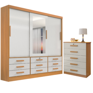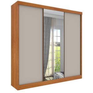 Guarda-Roupa 3 Portas Dubai/Santiago Plus(1 Porta espelhada) 1,79 m Cinamono/Branco – CARIOCA MÓVEIS