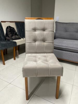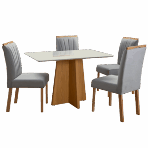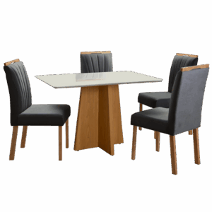 Mesa Classic 160 Cinamomo/Off White com 6 Cadeiras Sophia Mel/Veludo Grafite – CEL MÓVEIS + WM DECOR